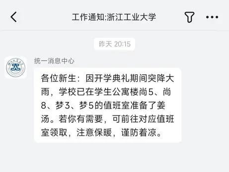 浙工大开学典礼上校长冒雨致辞拒绝穿雨衣, 学生: 很感动, 没来错地方